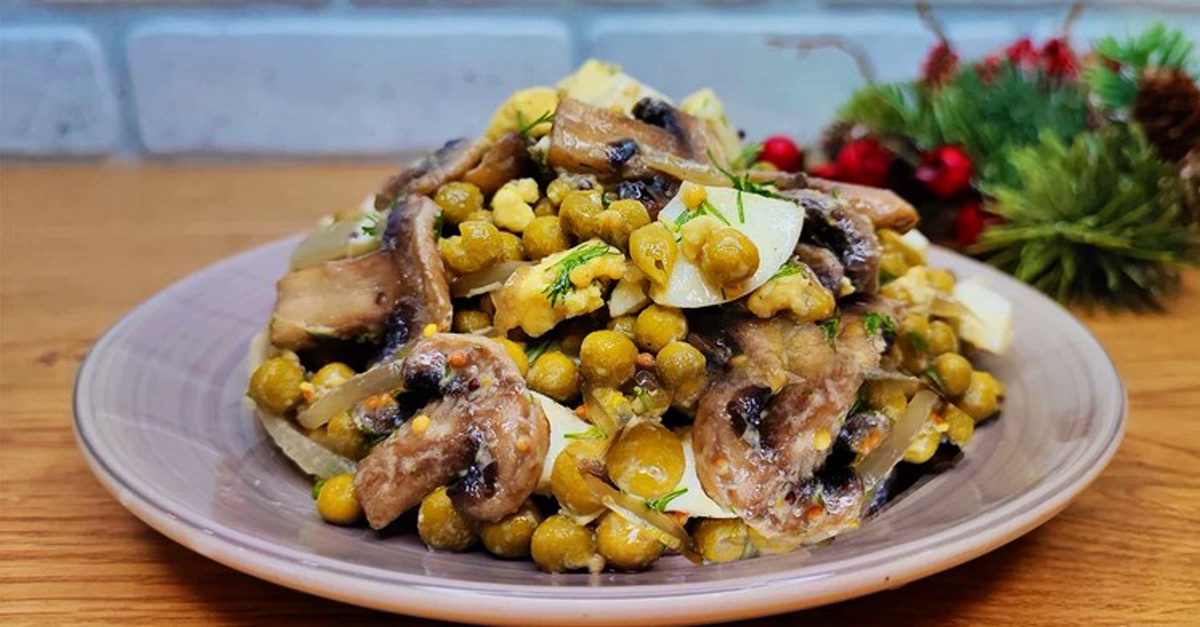 Хочу сьогодні поділитися з вами дуже легким та простим у приготуванні грибним салатом.