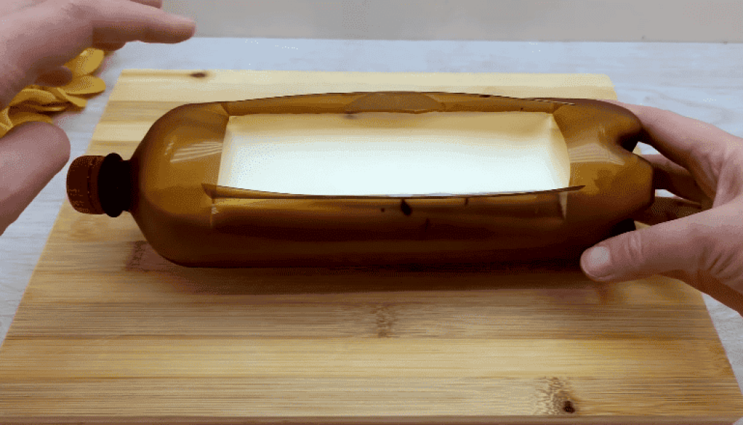 Заздалегідь підготуйте форму для десерту. Я взяла пластикову пляшку 1,25 л.