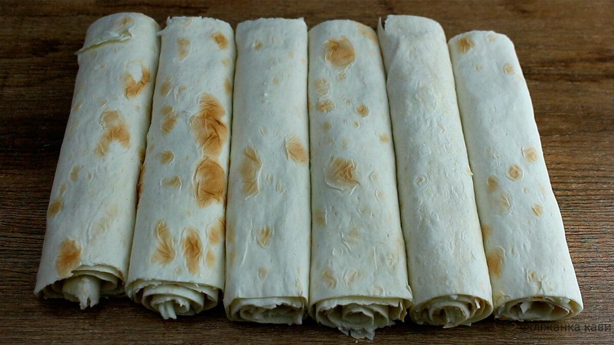Я ще зазвичай додатково перевертаю лаваш на бочок, щоб краї трубочок теж підрум’янилися.