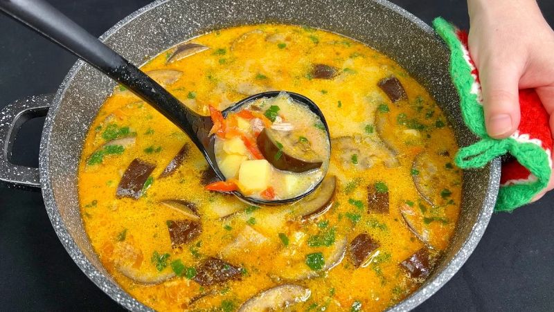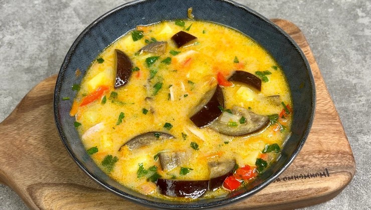 Баклажани тут “виглядають” просто чудово! Для багатьох баклажани в супах явище дуже незвичайне, але варто хоча б раз скуштувати, і ви зрозумієте, що цей інгредієнт тут не лише не зайвий, а навпаки – необхідний! Готуйте та пробуйте, друзі, супчик чудовий!