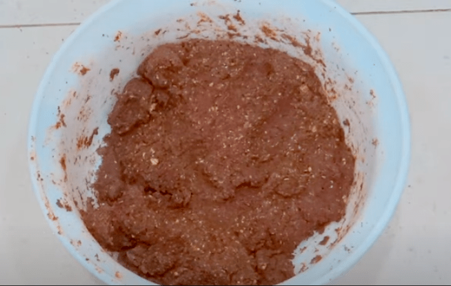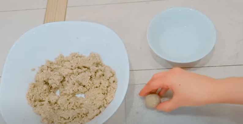 Перемішуємо всі компоненти до однорідного стану ложкою або руками. У нас повинна вийти досить щільна в’язка маса, яка добре ліпиться.