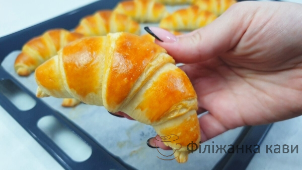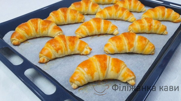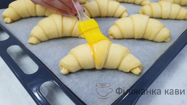 Перед випіканням змащуємо рогалики збитим яйцем.
