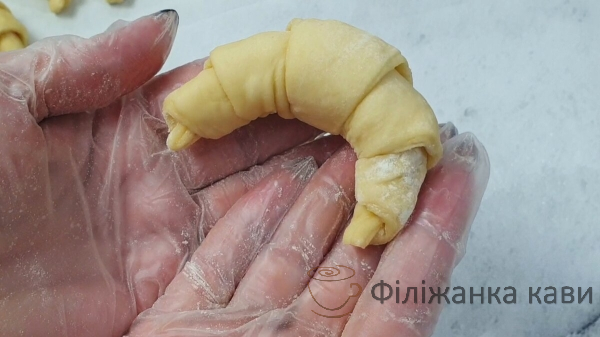 У рулетика злегка згинаємо краї і формуємо рогалик.