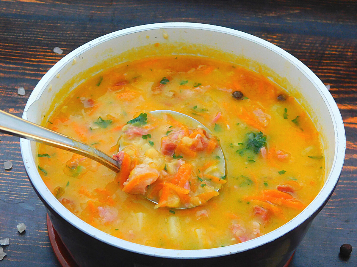 Гороховий суп з копченими реберцями готовий – смачного!