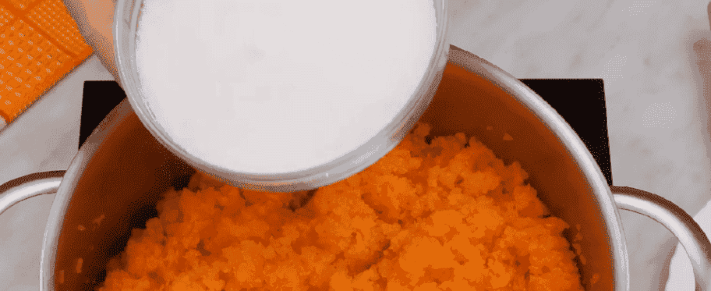 Залежно від солодкуватості гарбуза, додаємо цукор з розрахунку 50-100 г на кожен кілограм підготовленого гарбуза, а якщо гарбуз дуже солодкий або ви плануєте використовувати його для харчування діабетиків, можна і зовсім готувати без цукру.