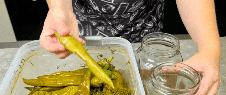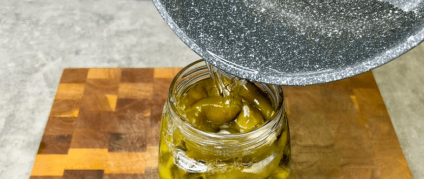 6. Через тиждень прибираємо гніт, зливаємо та проціджуємо розсіл і розкладаємо перець по сухих чистих банках разом зі спеціями та часником.