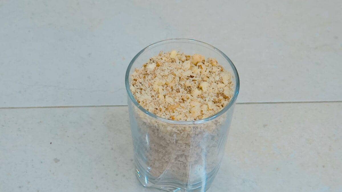 Підсушені на сковороді або в мікрохвильовці горіхи подрібнюємо також блендером або ножем.