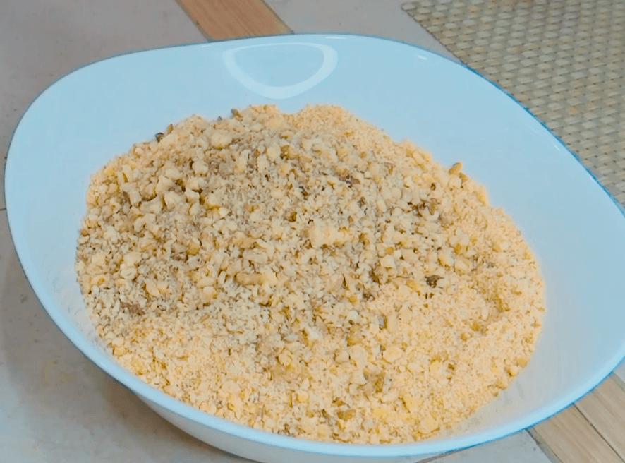 Якщо у вас немає блендера, то покладіть частину печива в щільний пакет і катайте качалкою по пакету з печивом, поки не отримаєте однорідну крихту.