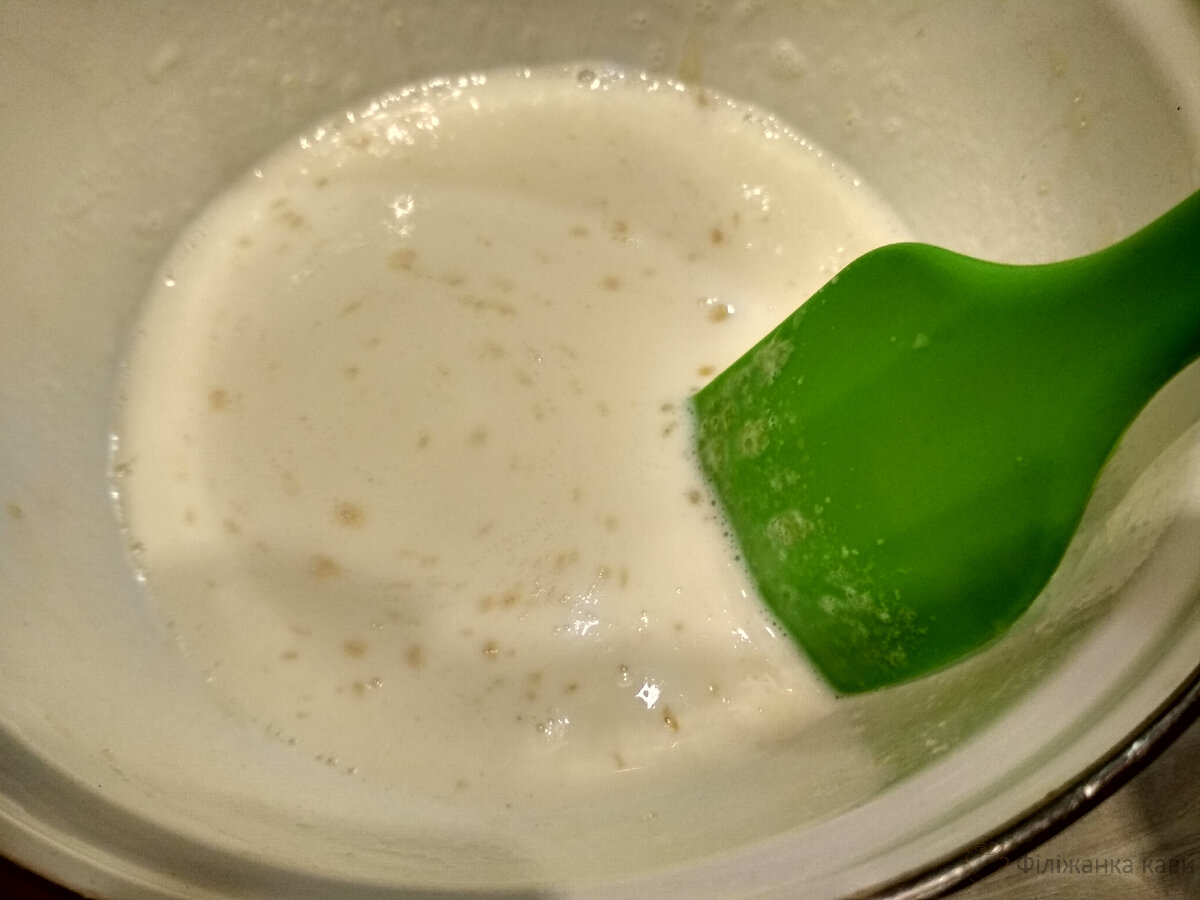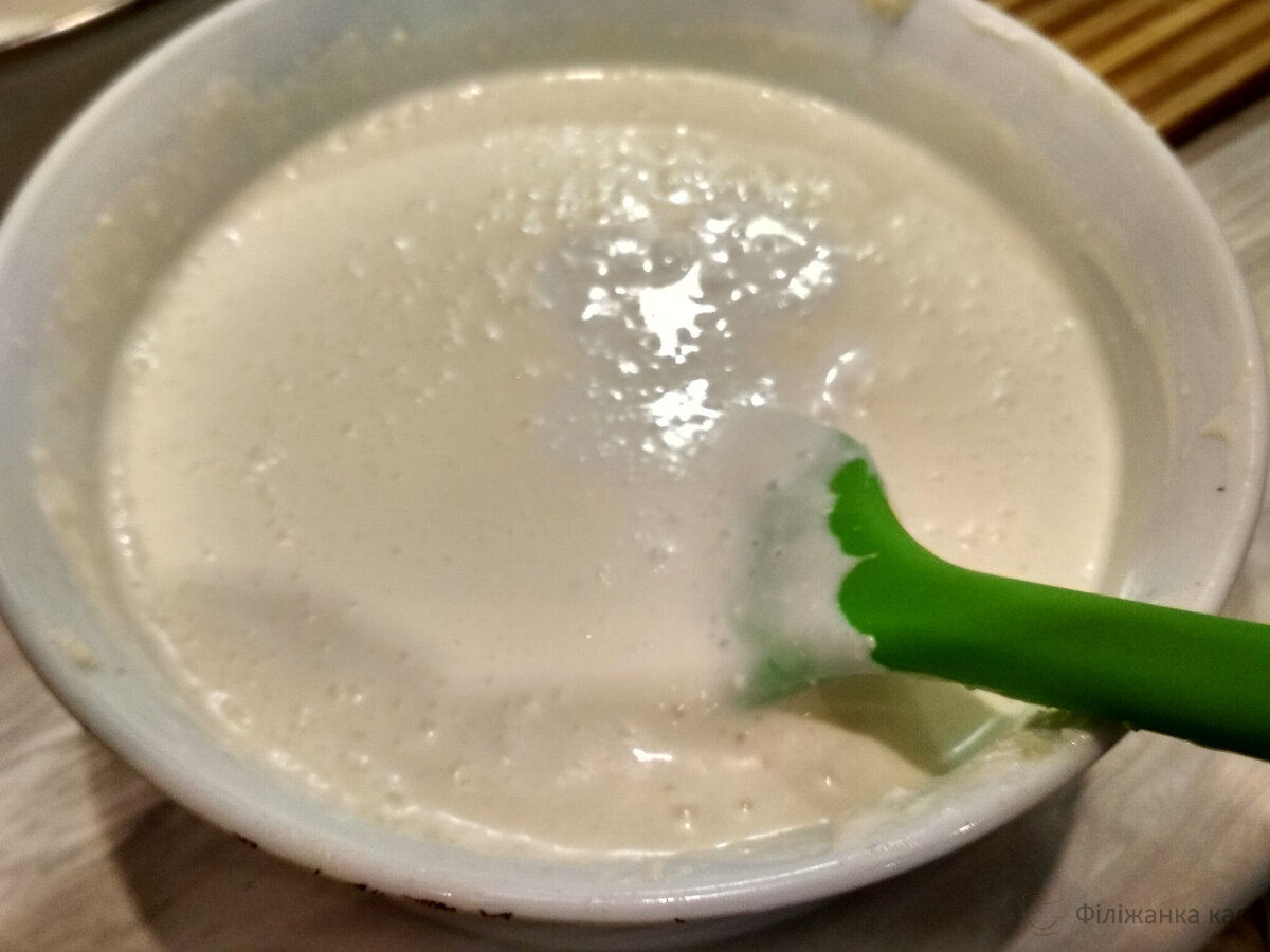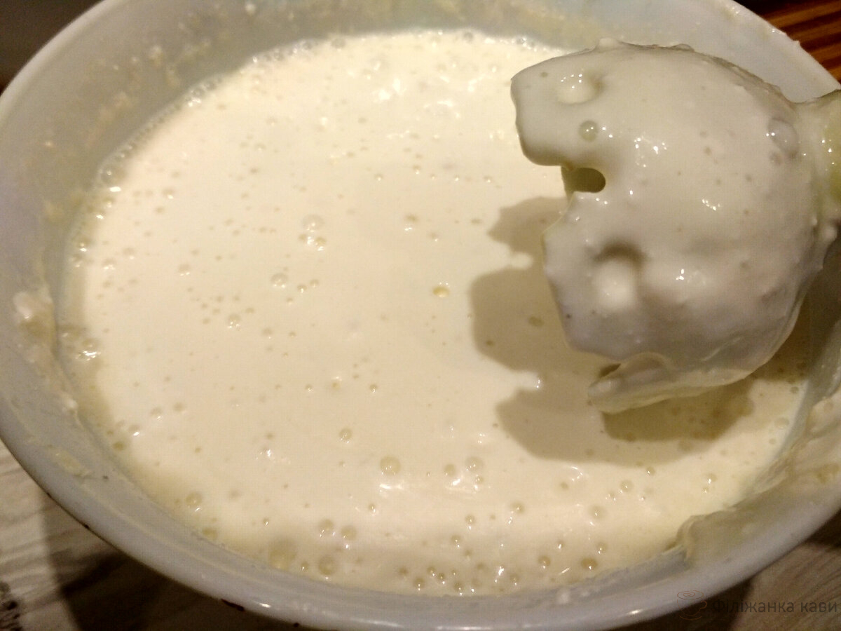 Збиваю нашу масу до однорідності. Правда хотіла, щоб сир був не такий рідкий, але нічого страшного.
