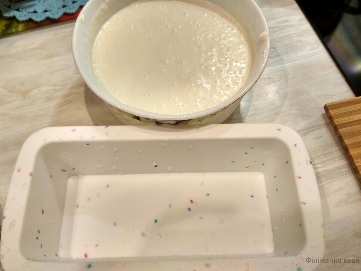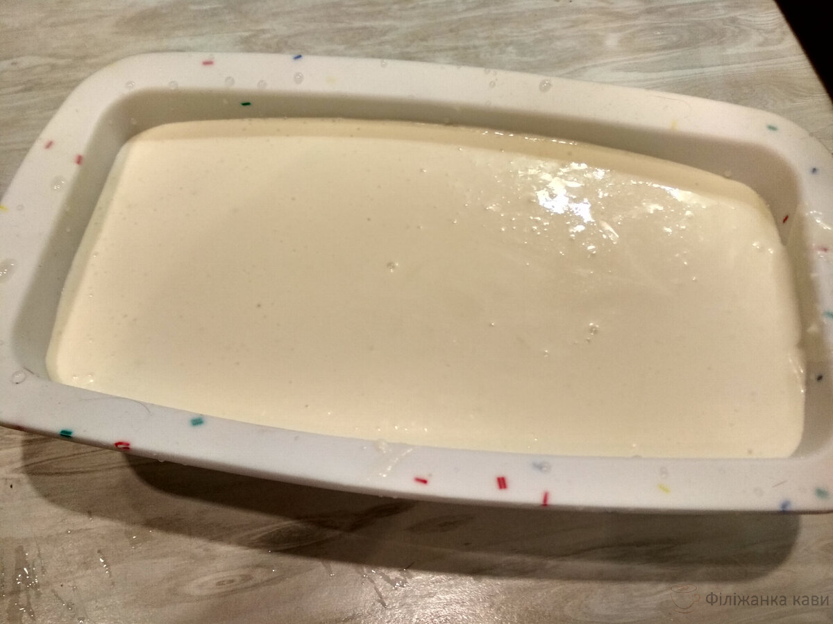 Виливаю приготований десерт в форму, у мене силіконовий для випічки.