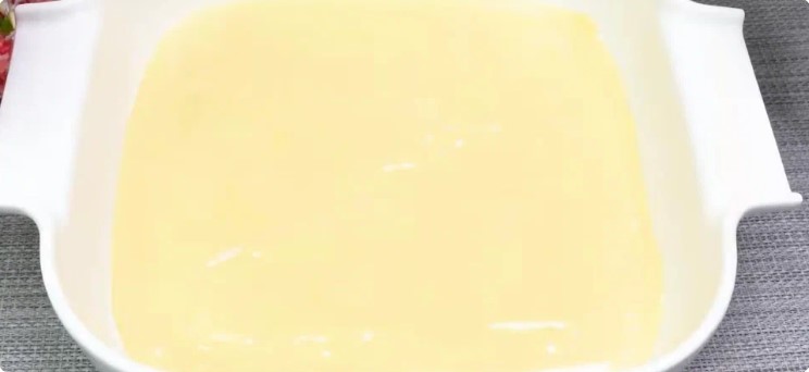 - Форму 25х20 сантиметрів застеляємо пергаментним папером і змащуємо вершковим маслом. Наливаємо трохи тіста, вирівнюємо і ставимо у розігріту до 200 градусів духовку – на 10 хвилин.