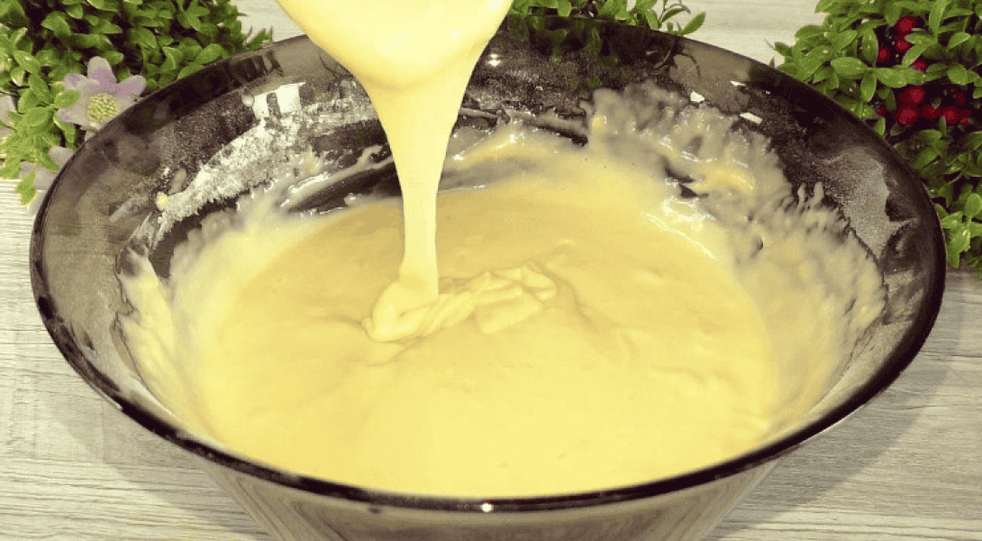 2. Просіяти борошно та розпушувач. По консистенції тісто виходить середньої густоти, воно легко стікає з лопатки, залишаючи на поверхні тіста (на деякий час) слід.