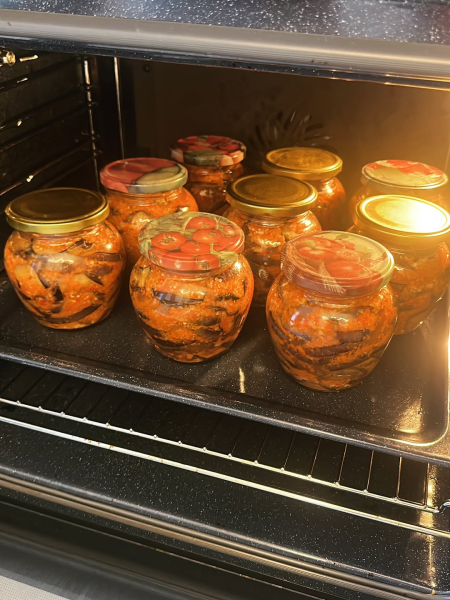 Шарами викласти в стерильні банки, шар баклажан, шар аджика.