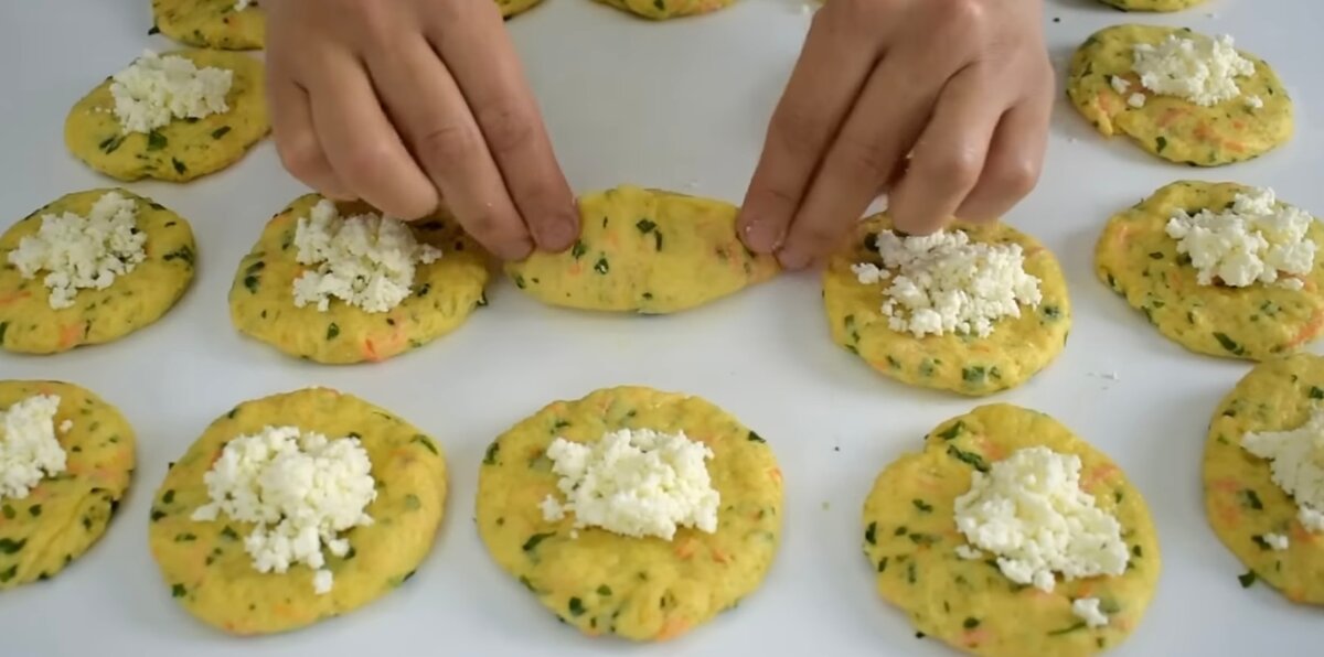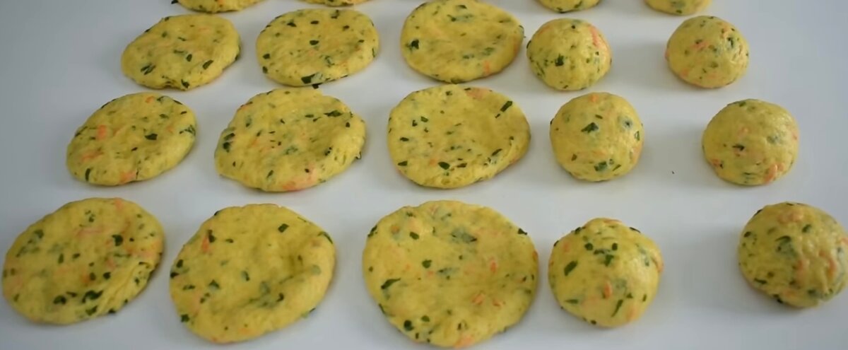 Зі шматочків формуємо колобочки і злегка придавлюємо їх.