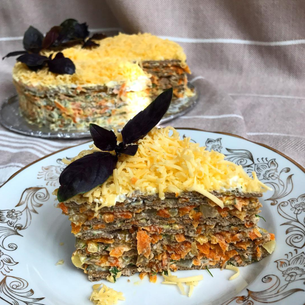 - Після запікання остудити до кімнатної температури, а потім прибирати в холодильник на 8-10 годин. Закуска добре тримає форму, не кришиться і не розвалюється! Ми її ще м’ясним хлібом називаємо.
