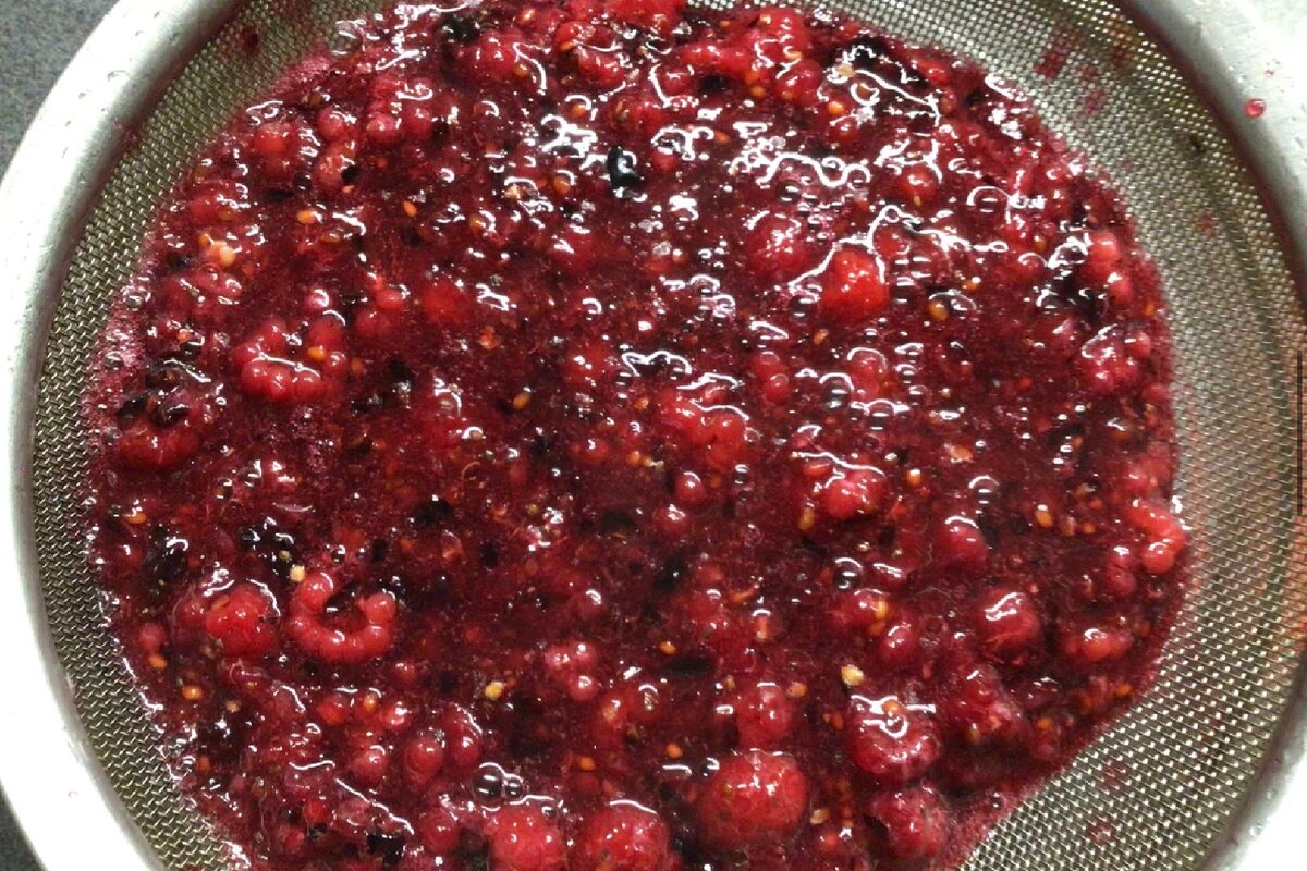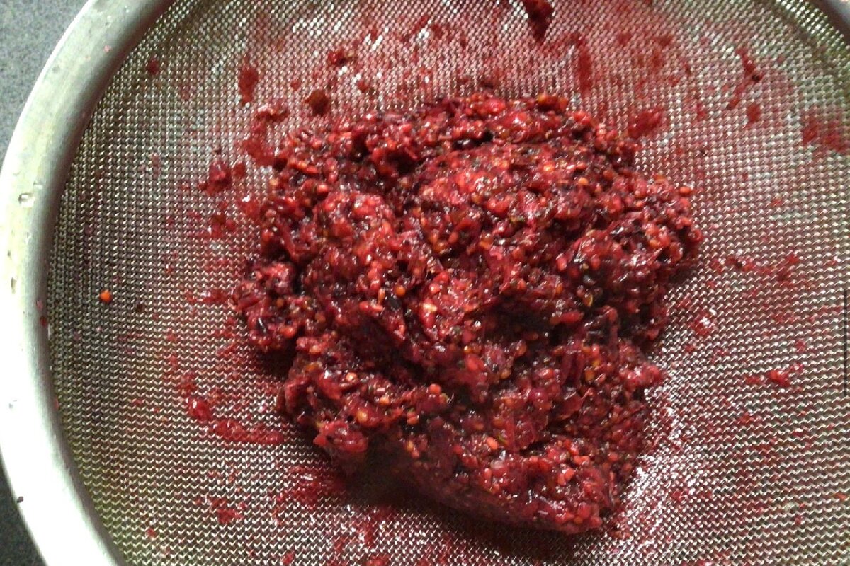 Перетираємо ягідну масу добре, щоб через сито пройшла не тільки рідина, але і м’якоть ягоди.