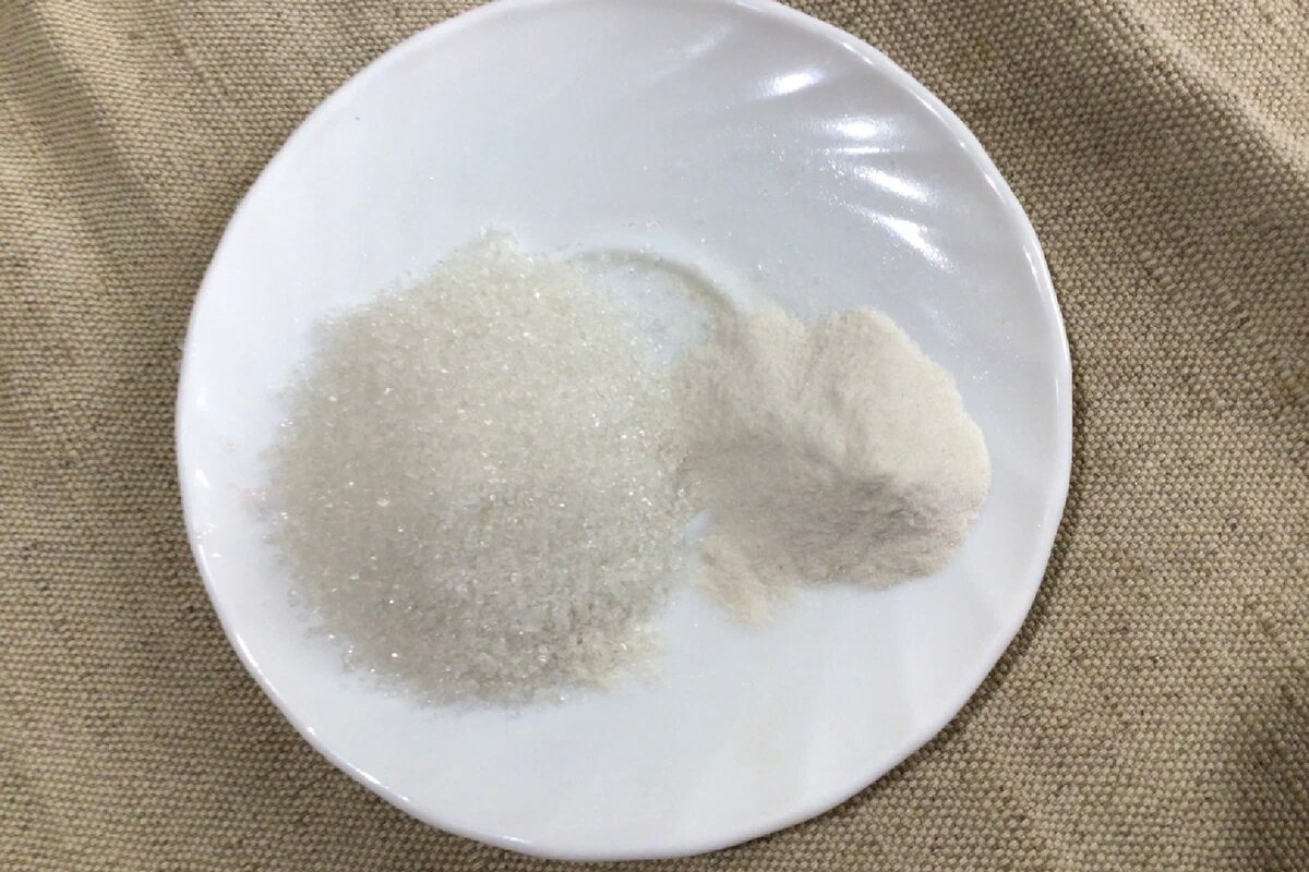 Поки повидло вариться вдруге. Цим часом приготуємо пектин. З’єднуємо пектин з 50 г цукру, змішуємо.