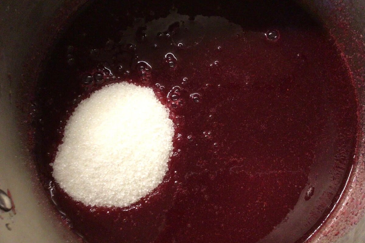 Додаємо рівно одну склянку цукру, перемішуємо і ставимо на вогонь. Доводимо до кипіння, але не кип’ятимо.