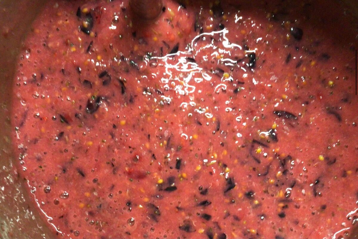 Як тільки маса закипить, знімаємо з вогню і викладаємо на сито і перетираємо