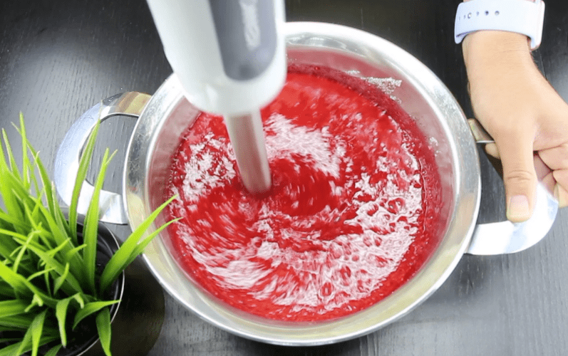 У ковшик з ягодами та агар-агаром додаю 100 мл води, перемішую і виливаю його в киплячу малину. Все добре змішую, доводжу до кипіння і варю знову ж таки 5 хвилин, періодично його помішуючи.