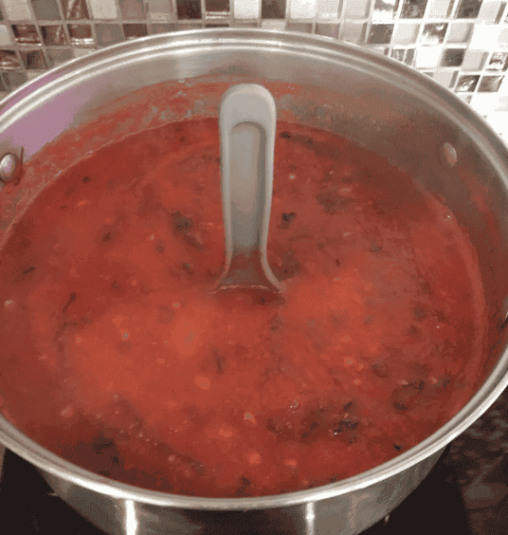 Соус вийшов насиченого червоного кольору, дуже густий.