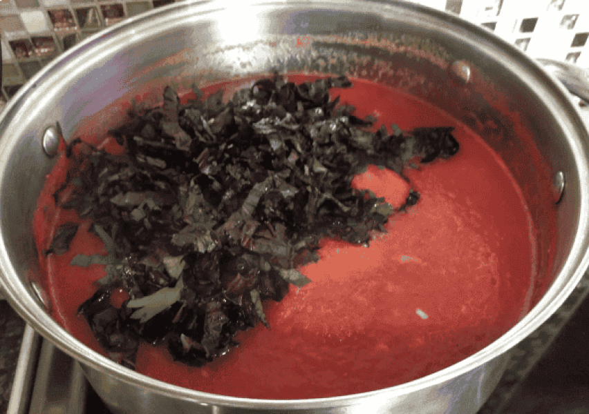 Знову ставлю на середній вогонь плити, даю закипіти. Додаю нарізаний дрібно часник.