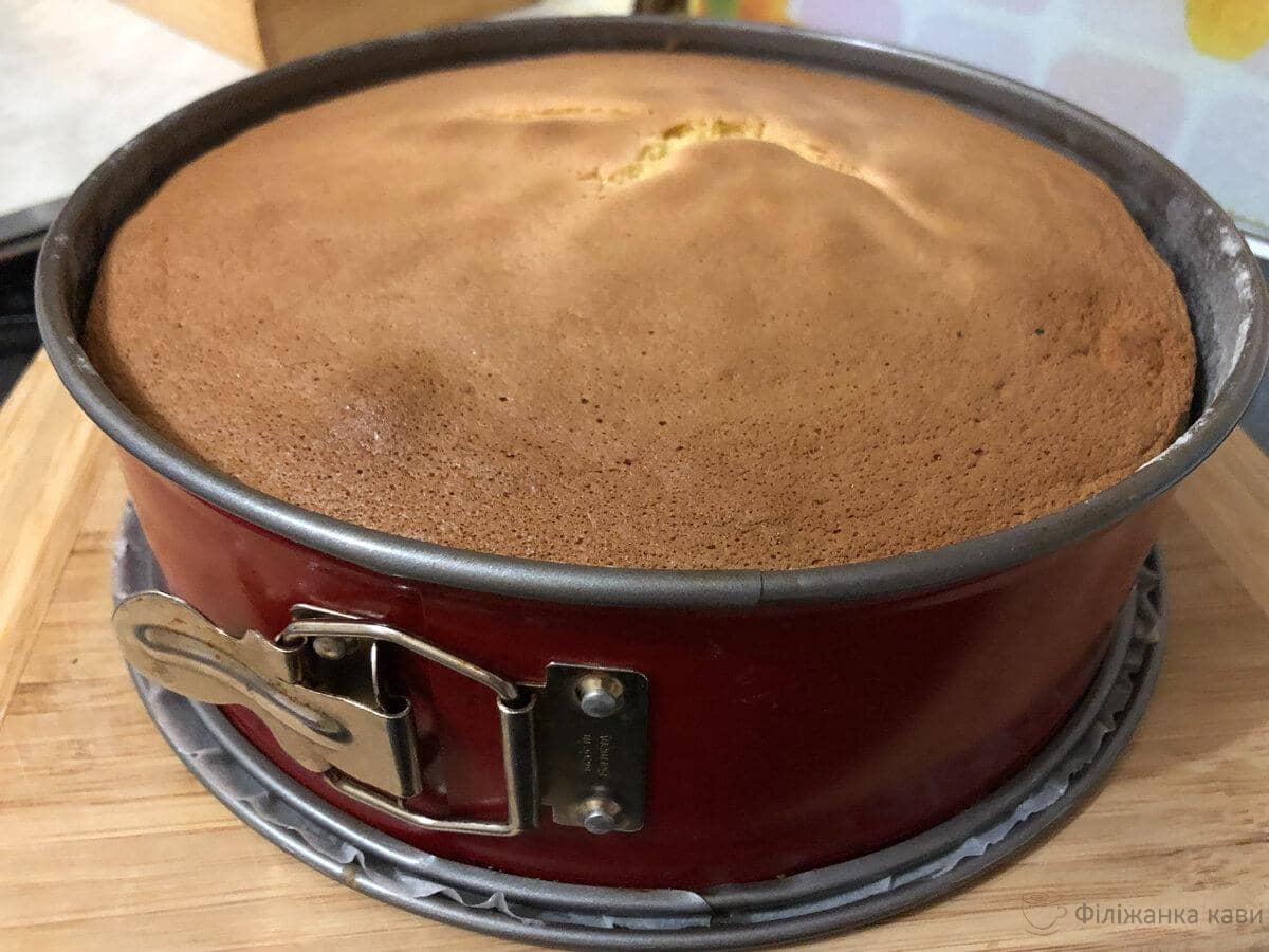 Готовий бісквіт залишаємо трохи охолонути в формі на 10-15 хвилин.