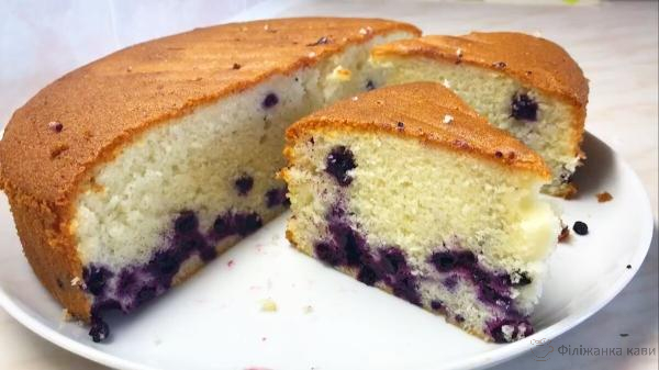 Пиріг виходить дуже смачний, не сухий і як ніби просочений сиропом. Ягоди добре підкреслюють смак пирога.