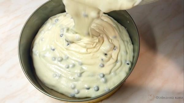 Добре все перемішую і переливаю тісто в форму. Діаметр моєї форми 24 см. Відправляю форму з тістом в добре розігріту духовку.