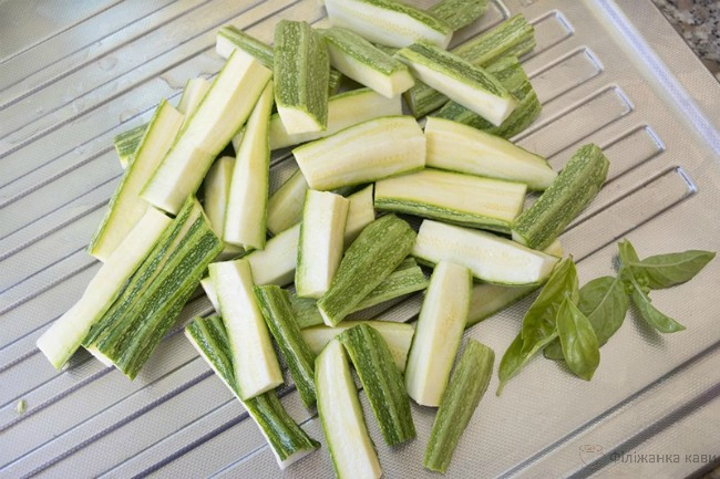 Вимиті молоді кабачки наріж часточками довжиною 8 см.