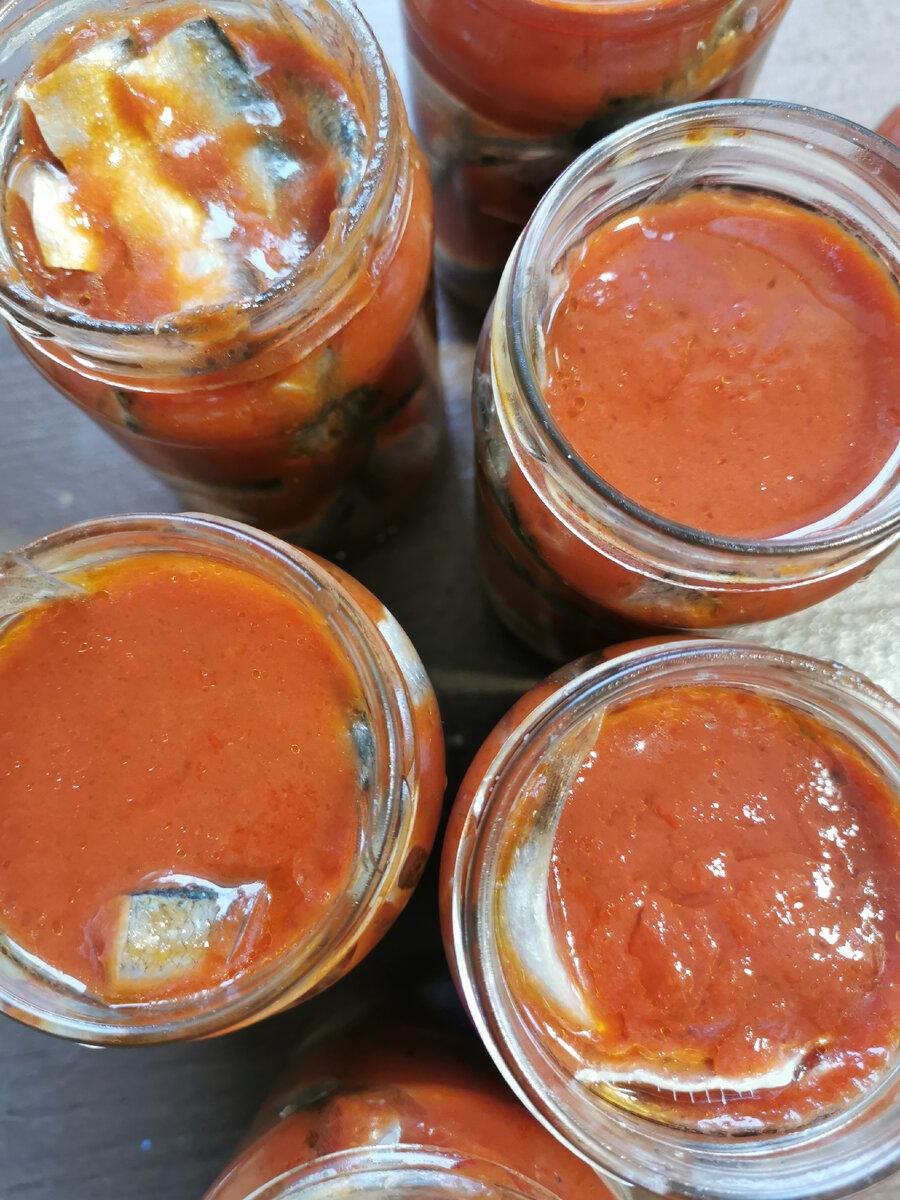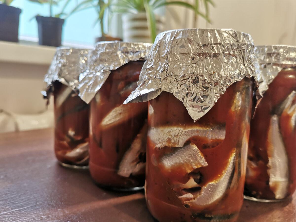6. Коли риба готова, закриваю кришками, які прокип’ятила. Перевертаю банки вкриваю до охолодження. Для більш яскравого смаку рекомендую настояти її пару тижнів, тоді рибка буде ароматніше.