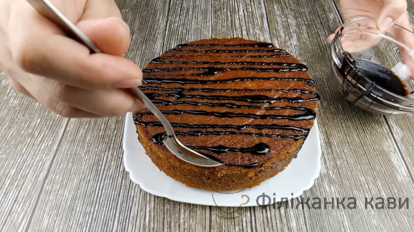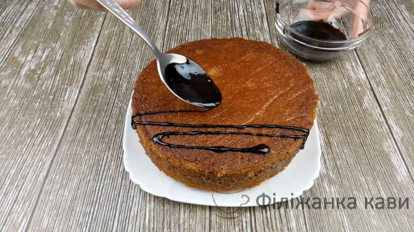 Помадкою прикрашаємо пиріг. Робимо це ложкою.