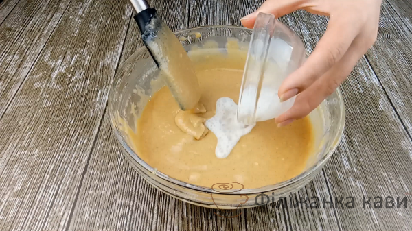 1 ч.л соди гасимо 1 ст.л оцту. Додаємо в тісто. Перемішуємо.