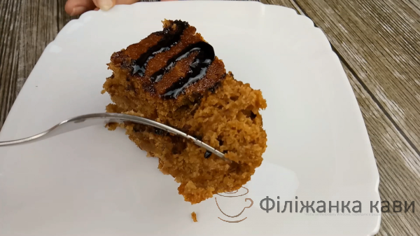 Готовий пиріг м’який, соковитий і солодкий. За смаком нагадує пиріг «Трухлявий пень». Рецепт доступний і не складний в приготуванні. Пиріг смачний. Сміливо пробуйте готувати!
