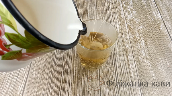 2 чайних пакетика чорного чаю заливаємо 200 мл окропу. Даємо добре настоятися і охолонути.