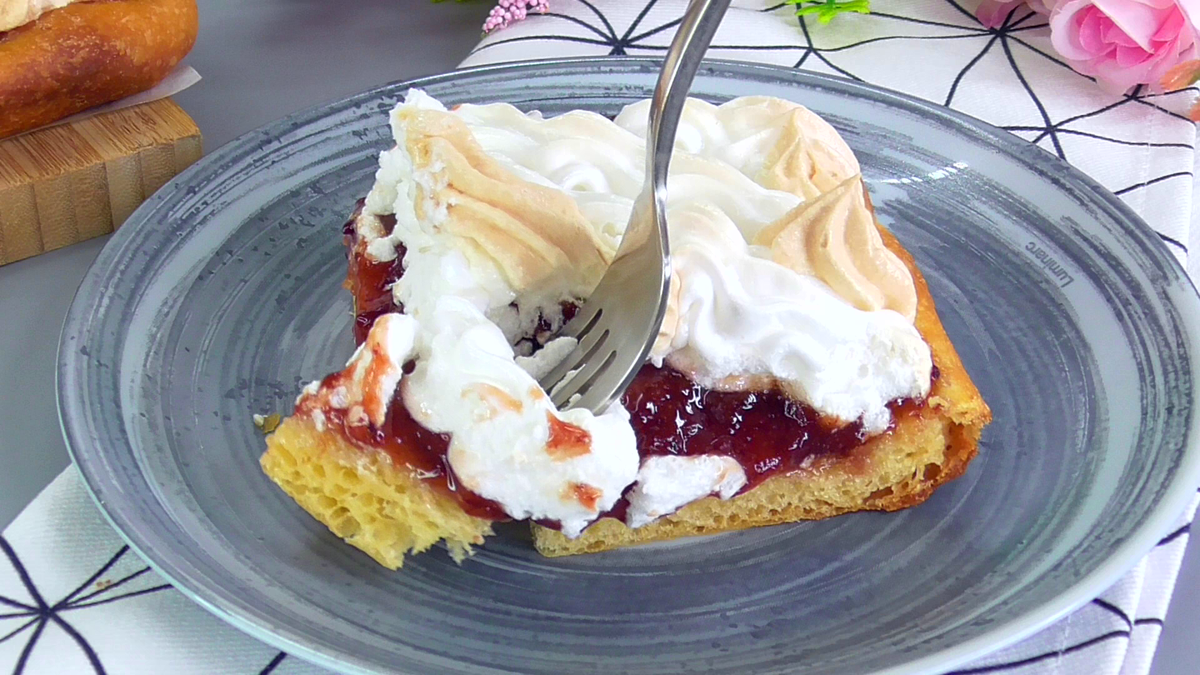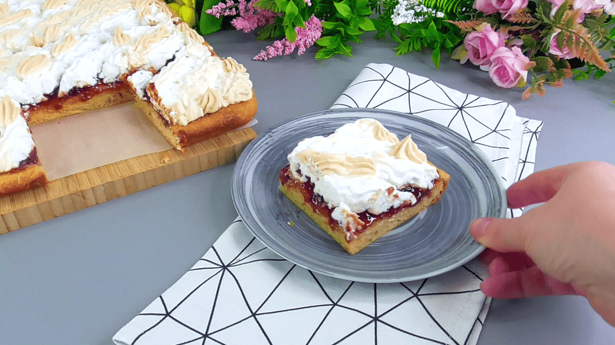Пропоную вашій увазі рецепт просто чудесного пирога. У нього м’яке тісто, шар варення і шар безе. Це дуже смачно. Раніше у нас такий пиріг вважався святковим і пікся в особливих випадках. Сьогодні я печу його в будні, але завжди із задоволенням.