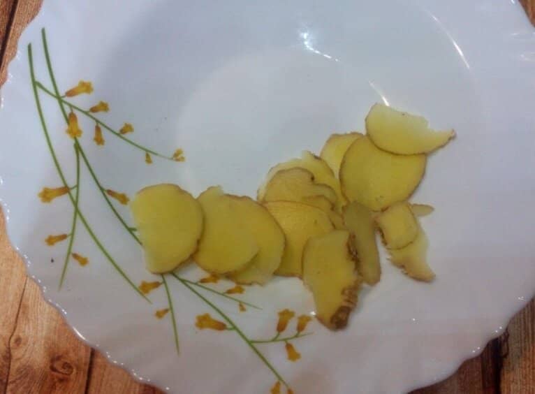 Імбир ретельно миємо, тоді не доведеться очищати. Нарізаємо тонкими скибочками.