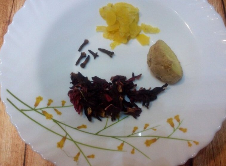 Додаємо в банку імбир, цедру, гвоздику, каркаде.