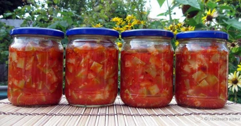 Секрет в тому, що ми втрачаємо тривалу стерилізацію, економлячи час і зусилля. Не переживайте, банки з закруткою відмінно зберігаються. І частину цієї приголомшливою закуски з кабачків ви з’їсте, не чекаючи зими. При бажанні можете додати до овочів трохи свіжої зелені. Але я вважаю за краще посипати нею готові кабачки при подачі.