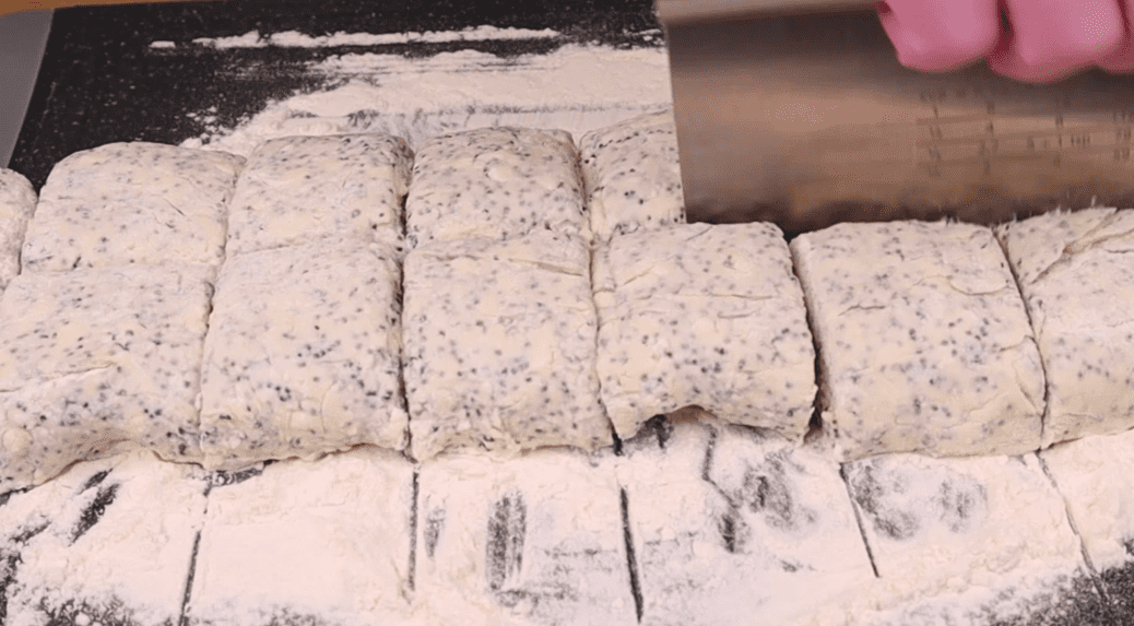 Робочу поверхню присипаємо борошном викладаємо масу і формуємо джгут, який потрібно розділити на 16 шматочків. Намагайтеся не вмішувати багато борошна в сирну масу.
