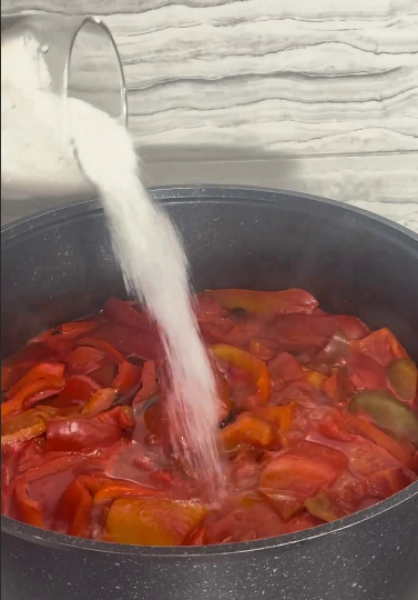 як починає кипіти додаємо туди підготовлений нарізаний перець.