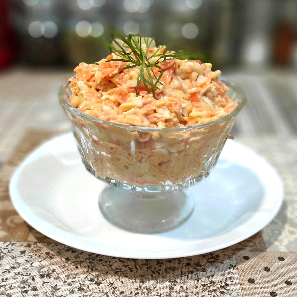 Легкий смачний і корисний салатик. Готується швидко. Коли гості на порозі цей салатик справжня паличка-виручалочка! І, незважаючи на те, що до складу входять найпростіші продукти салат виходить дуже смачний.