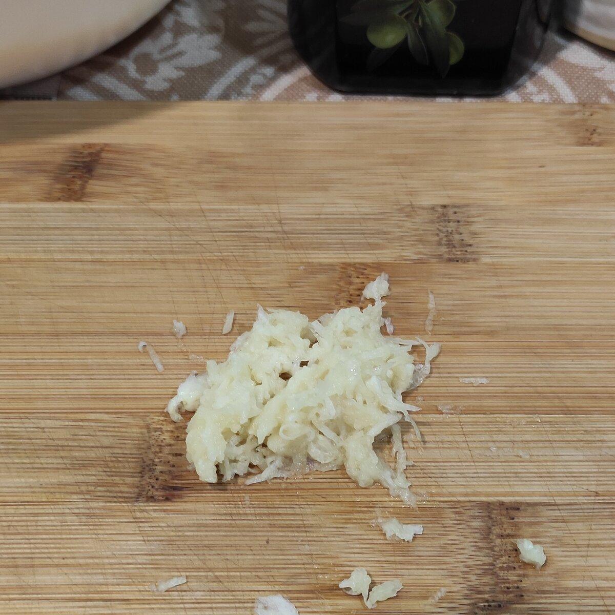 Часник подрібнити або через прес, або за допомогою дрібної терки.