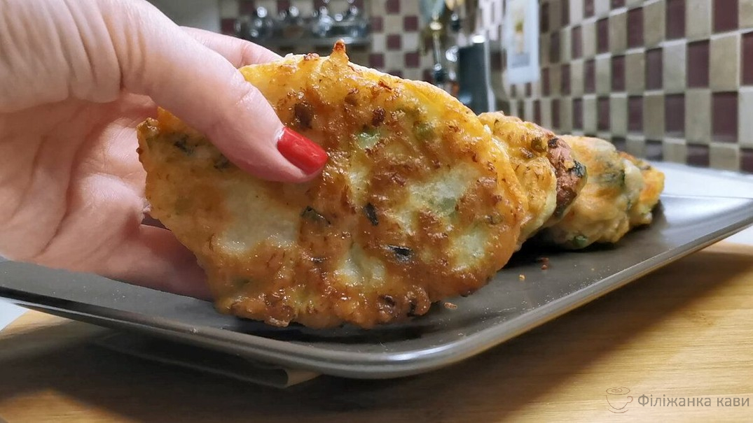 Пиріжки у мене пишні, за смаком зовсім як біляші. Готую дуже просто і швидко. Змішала тісто з начинкою і на сковорідку. Смажу як звичайні оладки. І начинки можна робити різні, хоч з м’ясом, хоч з куркою, хоч просто з зеленню. Цей рецепт з курячою грудкою і зеленою цибулею. Недорого і дуже смачно виходить. Називаю їх ліниві пиріжки. Дуже рекомендую, спробуйте.