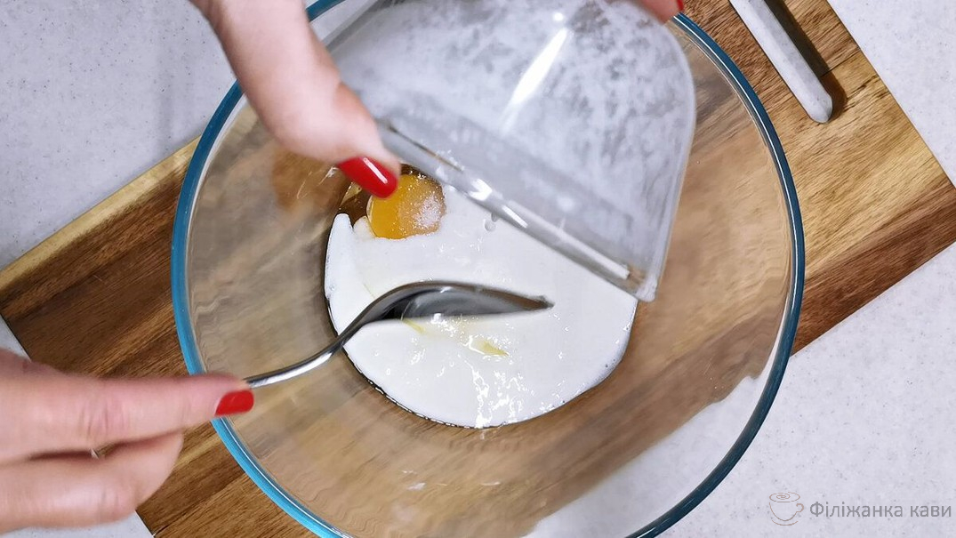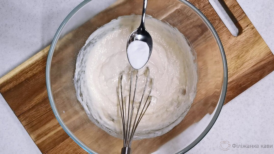Після цього додаю соду і знову перемішую.