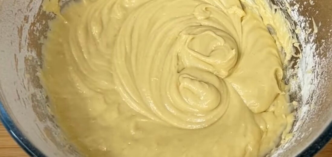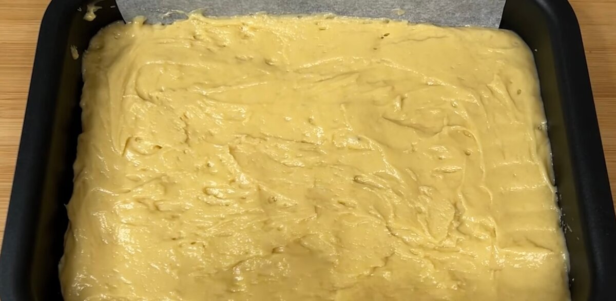Виливаємо тісто в формочку 20х30 сантиметрів і вирівнюємо.