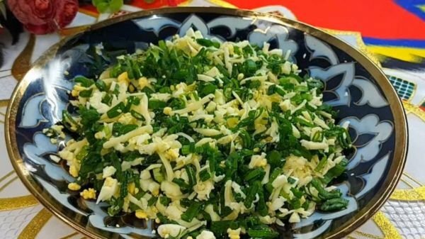 В цей час приготуйте начинку. Подрібніть зелену цибулю, а яйця відваріть круто і дрібно наріжте. З’єднайте інгредієнти, додайте тертий на велику терку сир і перемішайте.