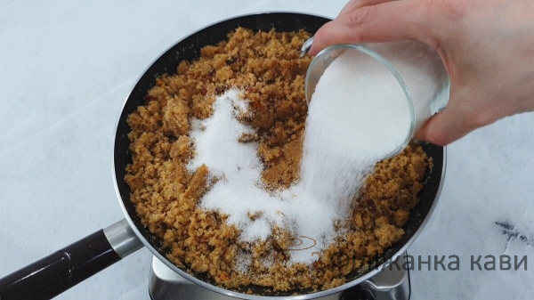 Тепер залишилося додати стакан цукру і перемішати. Помішуємо поки цукор не розчинитися.