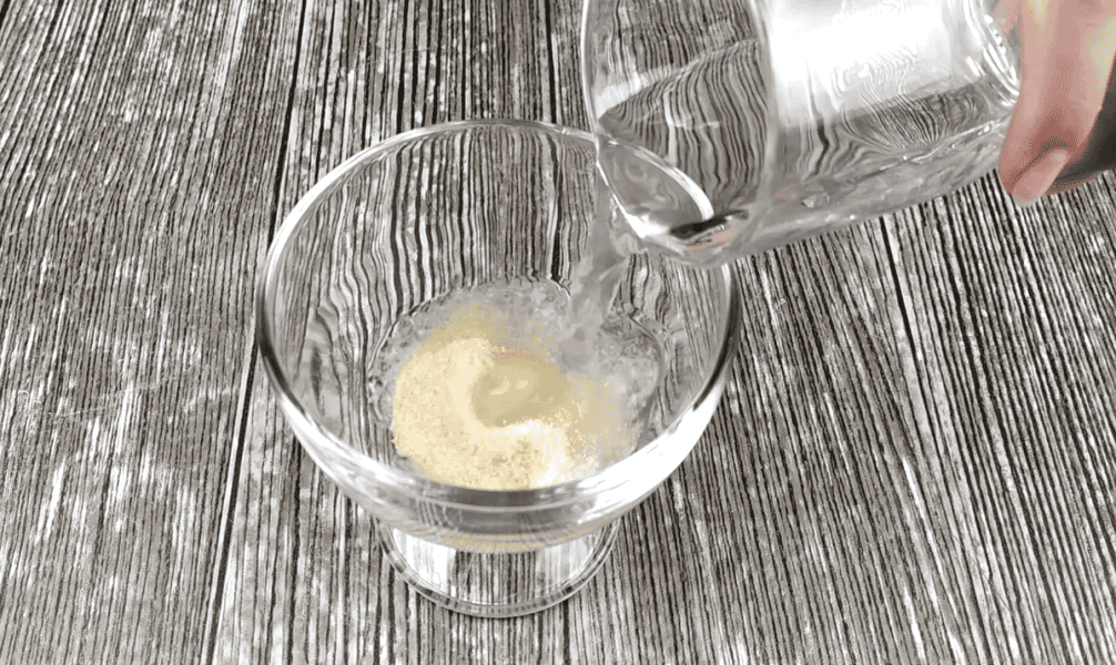 1 ст. л желатину (у вигляді порошку, сила 120 – 140 Блюм) заливаємо 60 мл холодної води. Перемішуємо. Якщо желатин швидкорозчинний, буквально через 5-10 хв желатин набухне. Інакше часу знадобиться більше.