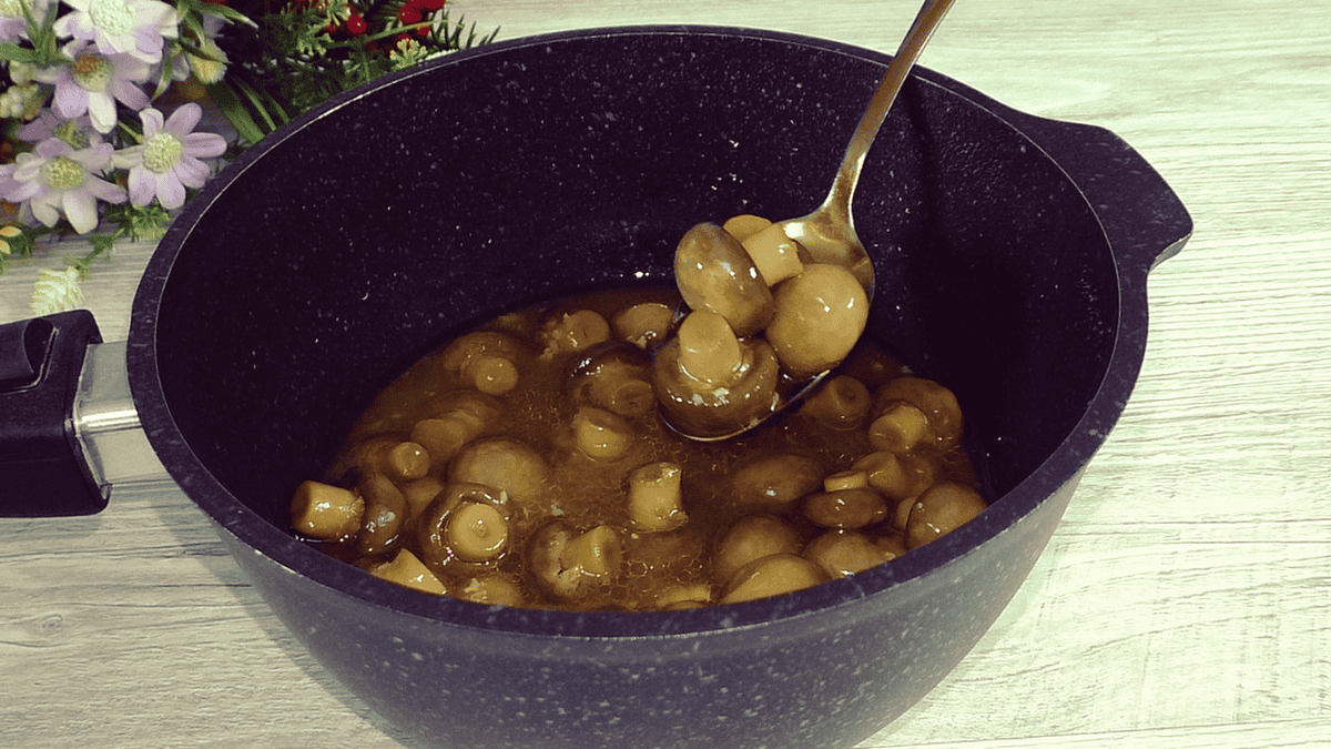 Залишити гриби в маринаді до теплого стану. Від того, що гриби варилися майже 30 хвилин, вони не стануть м’якими.